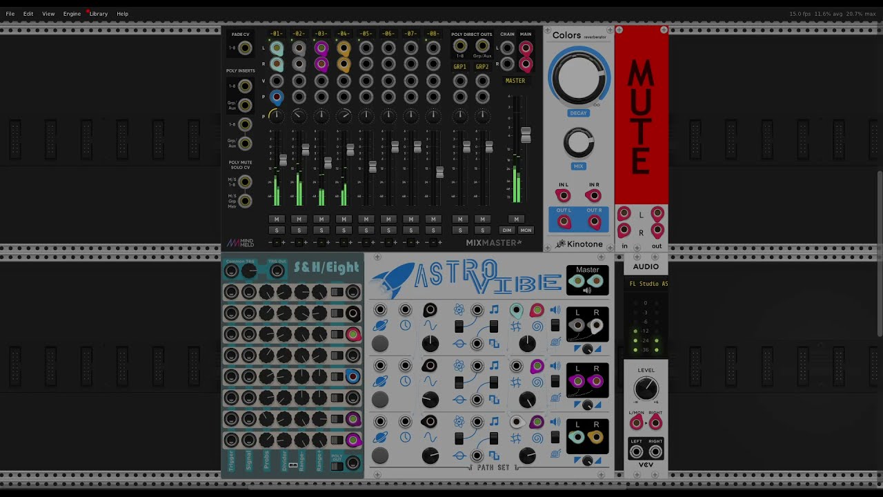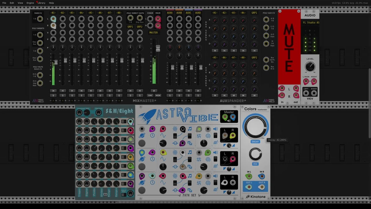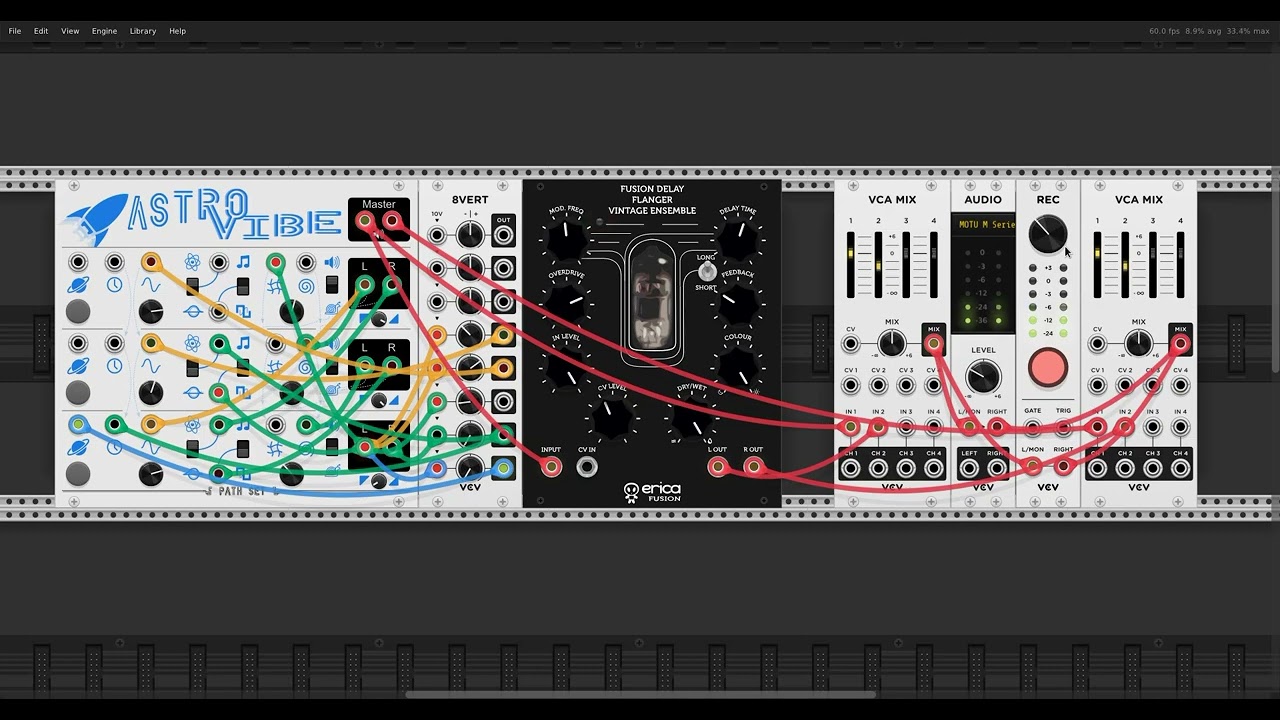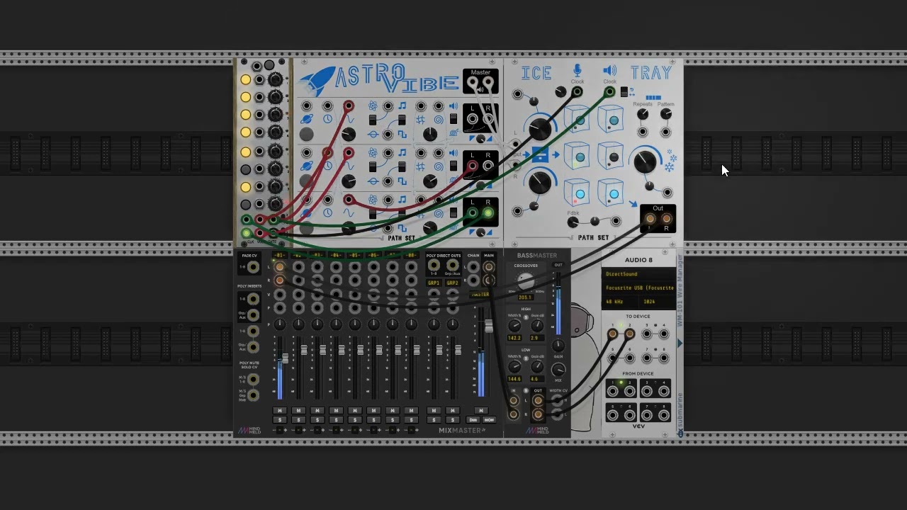 I think Astro Vibe just begs to be self patched. I didn’t do much with the other modules. Just a bit of attenuvertion to get a bit more variation in the CV levels, and some tuned reverb to beef up the sound a bit.