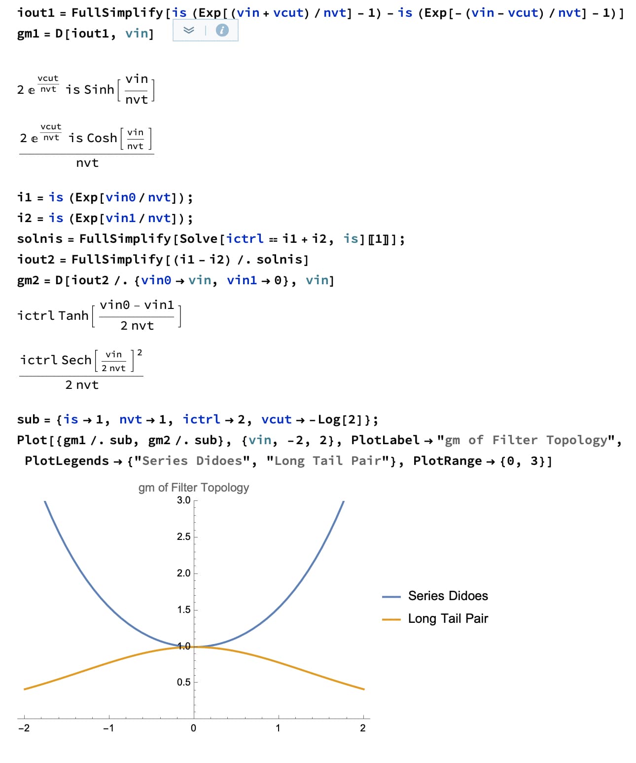 Also in these sorts of structures when you have opposite polarity pn-junctions meeting you get a sinh(x) type non-linearity, which modulates the cutoff frequency upwards with increasing audio input amplitude, vs the regular long tail pair which modulates the frequency downwards: