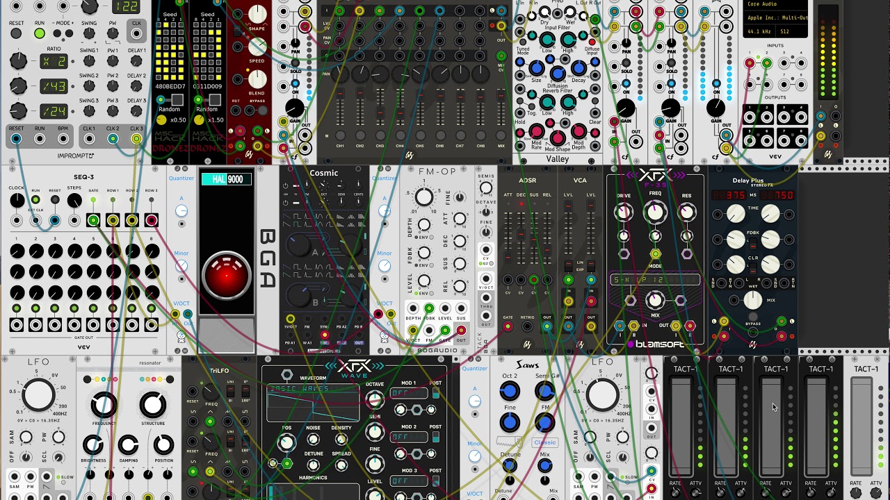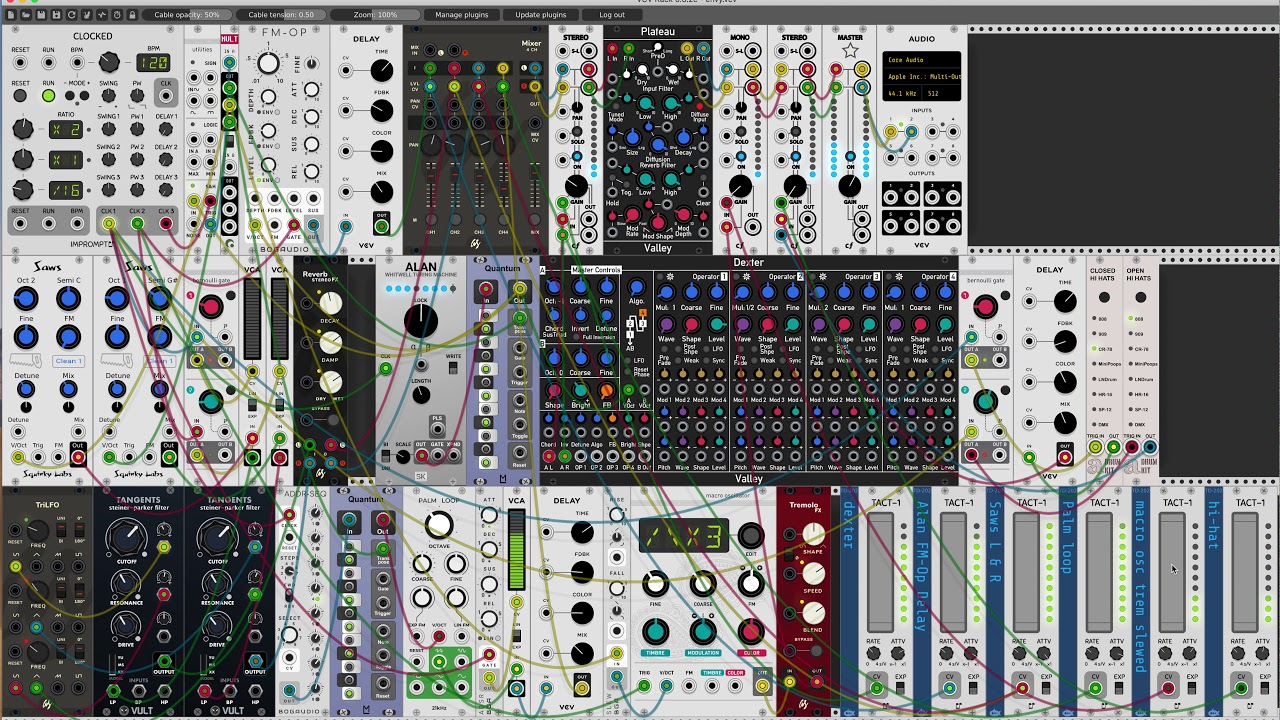 Random triggers to a couple of Drones - one receiving a slow LFO control voltage = glorious instant alien ambience deftly managed by Valley’s Plateau cranked up to just-over-too-much ![]()
