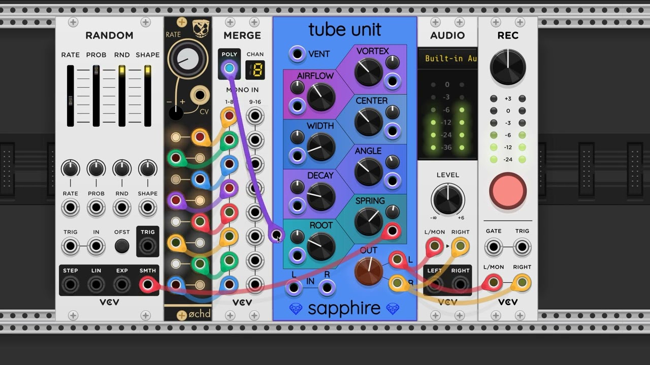 I’m excited to announce a fun new gadget for you to play with. My latest VCV Rack module Sapphire Tube Unit has just been released.