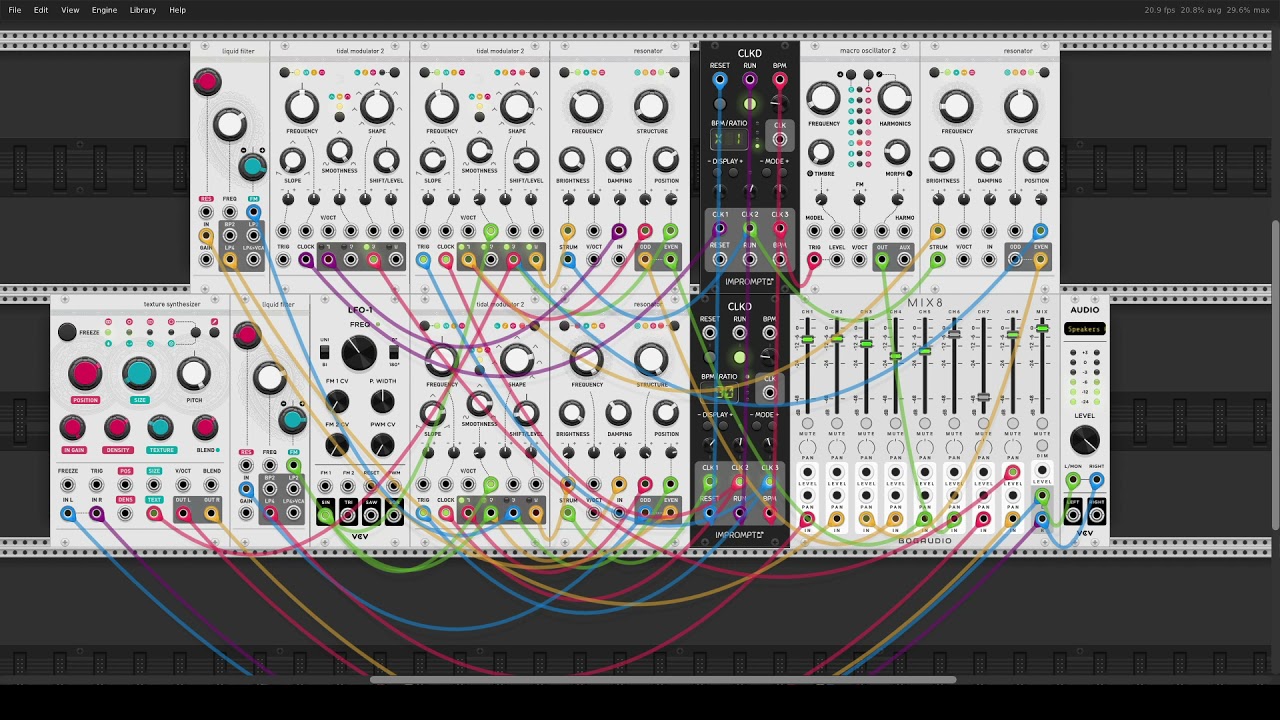 We will see what @VCVRackIdeas says⌠I do notice in a previous video he was using my LFN for randomness. It always been one of my more popular modules, and I think itâs still âuniqueâ. Itâs basically noise run through a graphic EQ, except the octaves are at very low frequencies, as low as 1/20 of a hz, I think.