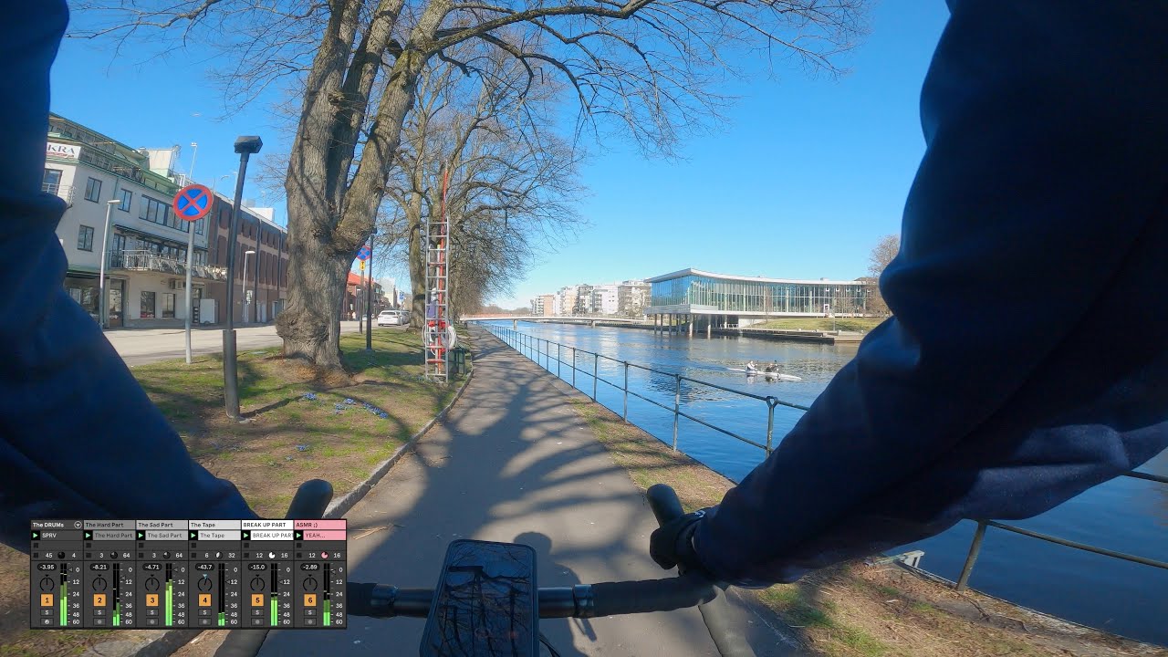 Filmed in mars. Bike commuting to work, beautiful day but ice cold and slippery on the way home, summer tires. Had composer William Basinski in my AirPods, guess thatâs what inspired the music.