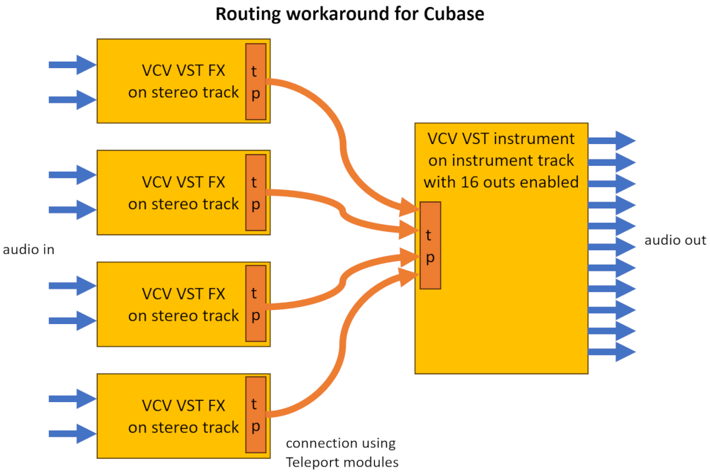 So you have 6 input channels and 6 output channels. So in Cubase you have to use VCV as an FX, not as an instrument.