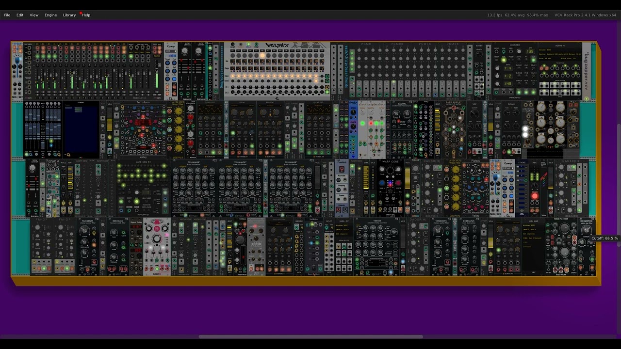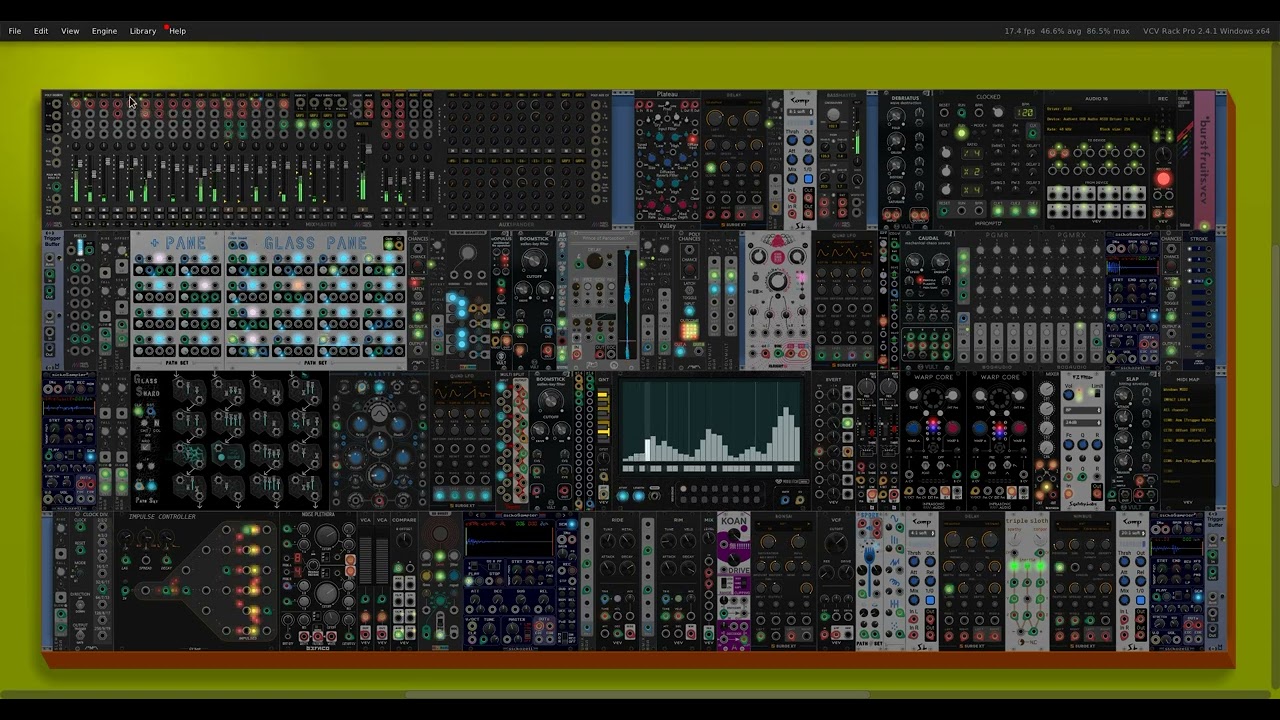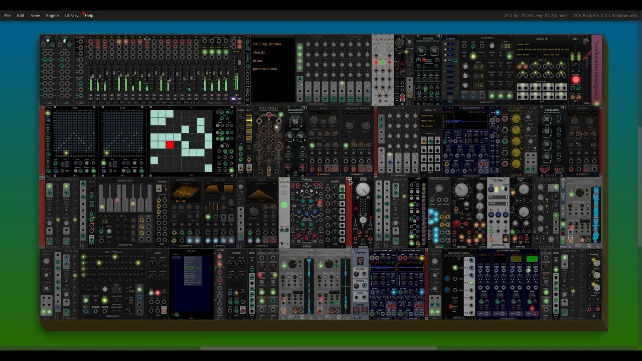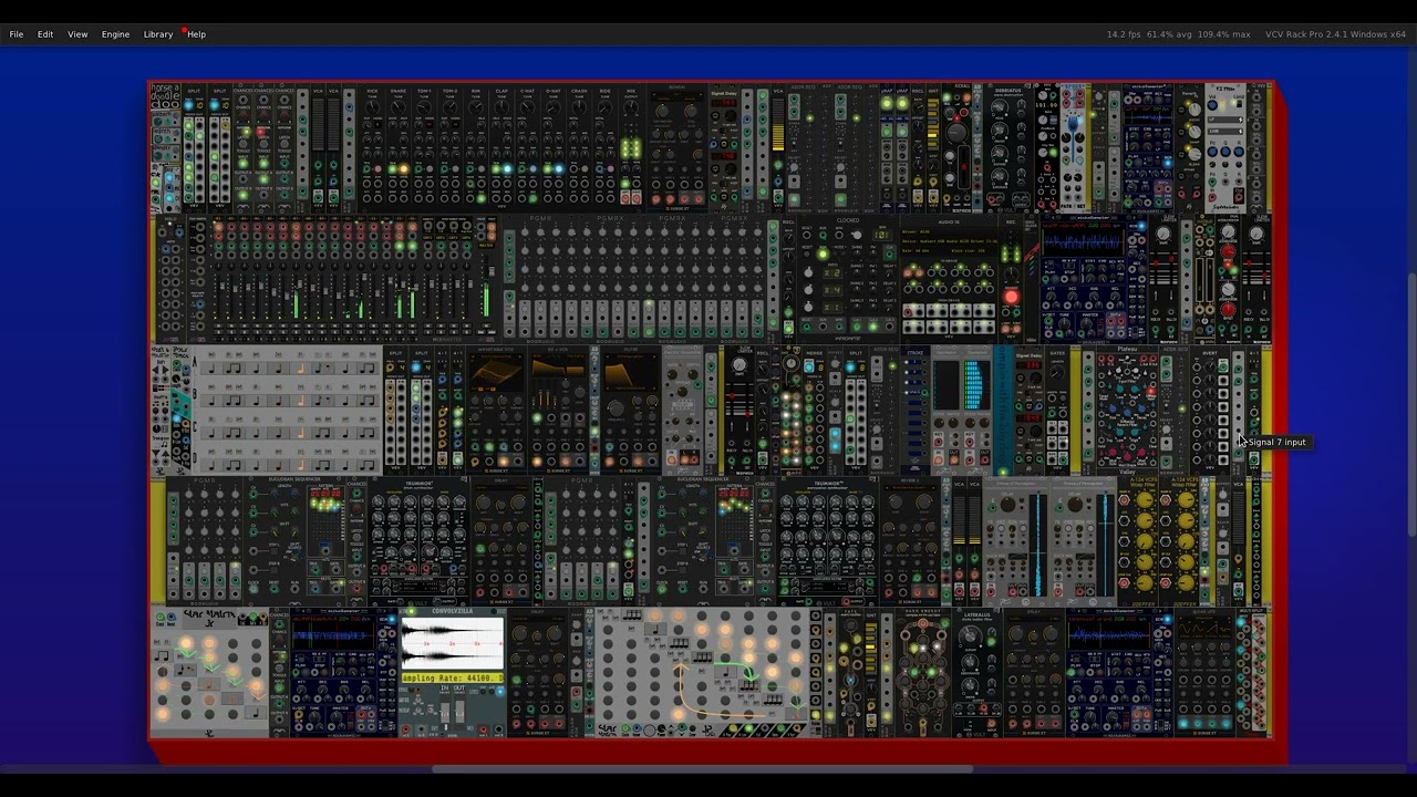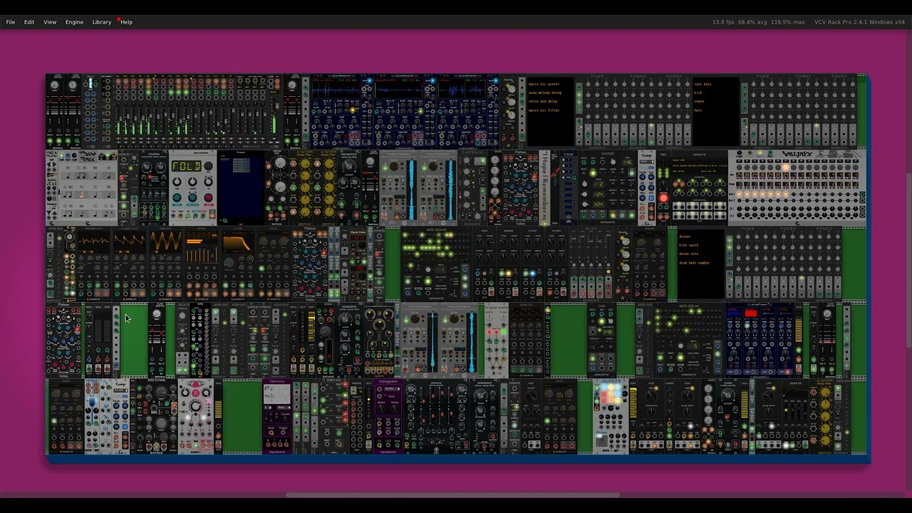 I really like how you put all this stuff in one patch, yet everything is crisp and clear, nothing steps on or drowns out anything else, and it all just works. It’s a great combination of complexity and restraint. Oh, and it’s a lot of fun to watch all the blinking lights! Very cool! I hope you will continue to publish your creations.