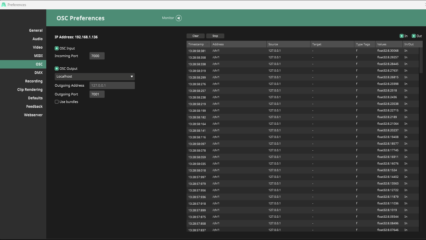 Itās been a while since Iāve done this but opening up Resolume Arena and dropping Trowasoftās cvOSCcv into Rack and turning it on instantly gave me a working connection with the default settings.