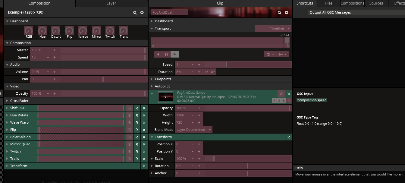 This will highlight all mappable controls in Resolume. Select one you want to control. The shortcuts window will show you the controlās āaddressā under OSC Input.