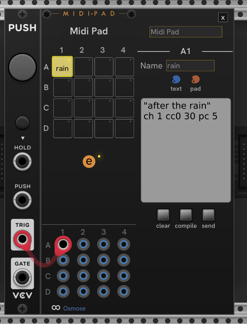 Here’s a minimal example of a single pad in MidiPad hooked to a trigger that selects the preset “after the rain”.
