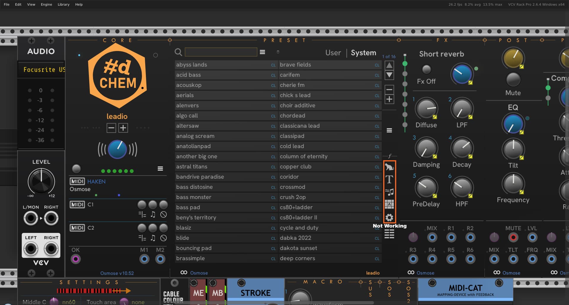 I’m going to get busy with the Chem overlay stuff now. I still haven’t got that working. I have the FM synth and another one from Expressive for free. They work fine, but I haven’t got them working in Chem yet.
