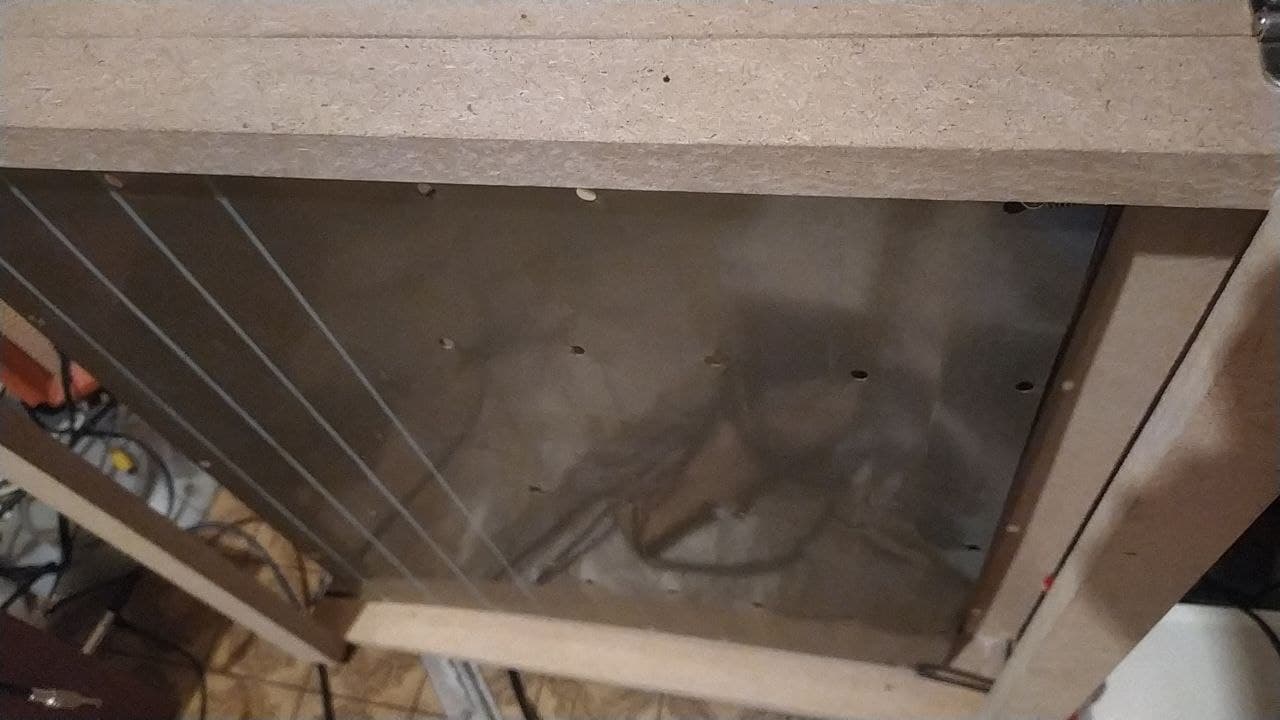 Yep, a plate reverb! This one don’t need any esoteric explanations. I just glued a speaker on the back of this thing and put a couple of piezo microphones. To drive the forementioned speaker I bought a TDA2030 kit. Which, by the way, is the first kit I ever bought… It works! Somehow it’s muddier than my spring reverb, even though this bar is very low, it managed to limbo dance under it. I think the metal is bad, it’s a cheap thin plate. I might do something with it later… Or might now, haha. We’ll see!