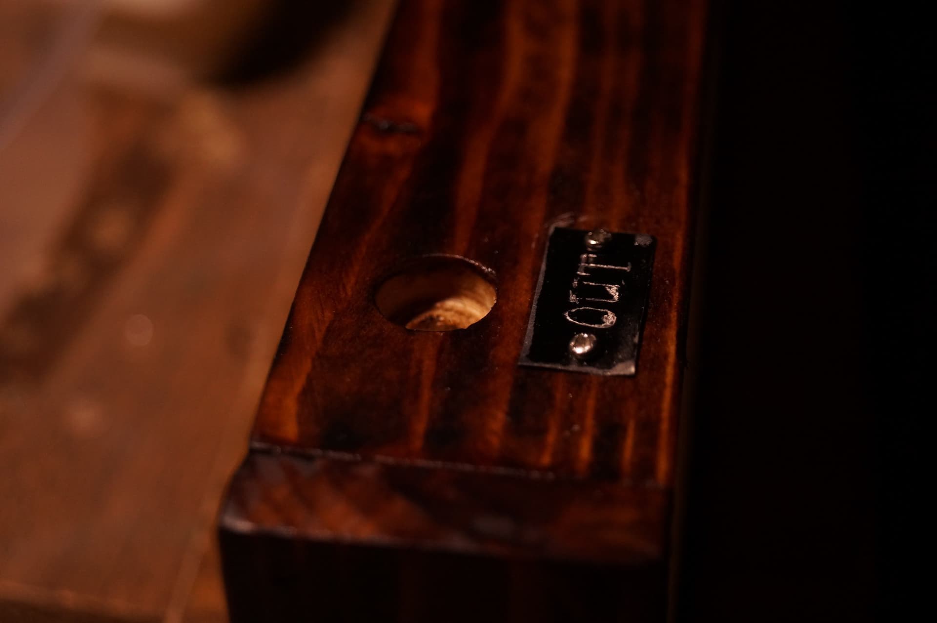 Now, the spring tank was hard to fix. I mean, fix all the problems, like with escaping magnets and moving springs… Like I couldn’t fixed the springs so they would hold the magnets in the gaps of E-cores. So I just demagnetized the magnets by blasting them with hot air out of my heat gun (I also changed the way of attaching them to springs, I used a gel pen tube or a stem or whatever you call it, haha) and redid the way of mounting the springs. I also bought other springs, And stained the wooden box… and made engraved plates for IN and OUT.