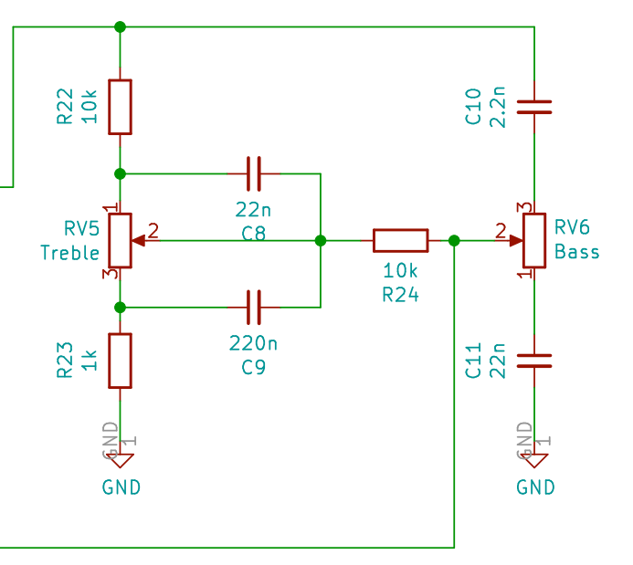 See the problem? That’s not a big issue if you make it like I usually do: on a perfboard and then drag the wires to the pots, but this time I ran out of perfboard space and decided to build the tone section separately, soldered directly to the pots. And while redrawing it in EasyEDA I encountered a problem of… like which lug goes where, which pin is which, and while trying to understand this schematic I felt like I am having a stroke, like: alright, we turn the treble knob and… what happens? Why? And the bass pot, so you turn it and.. What the hell? So I consulted the AI, I roughly summarized the schematic and it kept telling me about treble section capacitors that go here and there, and I was like - wait, it says treble caps are just across the pot. And in typical AI fashion it goes “You are completely right“. I like being right, so I forgave the AI for being dumb (and in reality I was being dumb). But it still didn’t make much sense, so I googled a source on tone stacks and found a great site! Here it is, and you can play with it! And while playing I realized why it felt so wrong when I was thinking about this tone section before, yep. The treble and bass pots on the Skull and Circuits schematic are backwards or… mistyped or whatever. Thing is, dude gaslighted me even without knowing me, that I can respect. I thought I am losing my mind. I even argued with AI about that, while being in cognitive dissonance, but believing in what is written. The moral of this story is - … I guess, there’s no moral in this story, I will continue being a monkey.