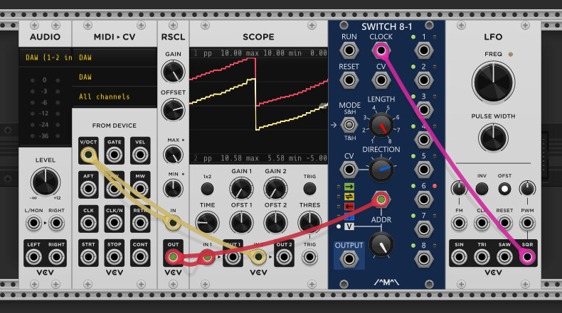 Is this what you’re after? eg, the Count Modula 8:1 switch wants to see 0-10v at the addr input, so rescaling your MIDI input to 0-10v = inputs 1-8…