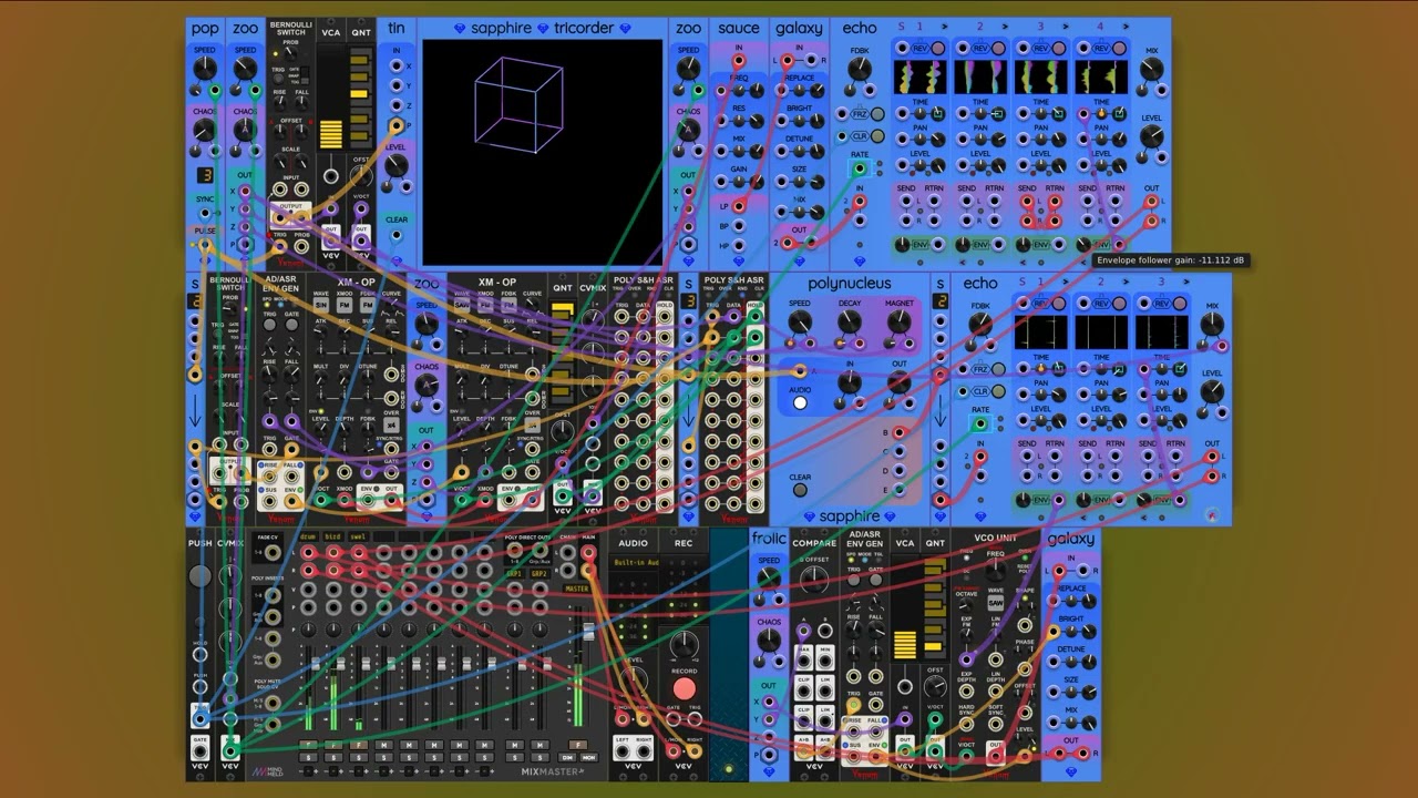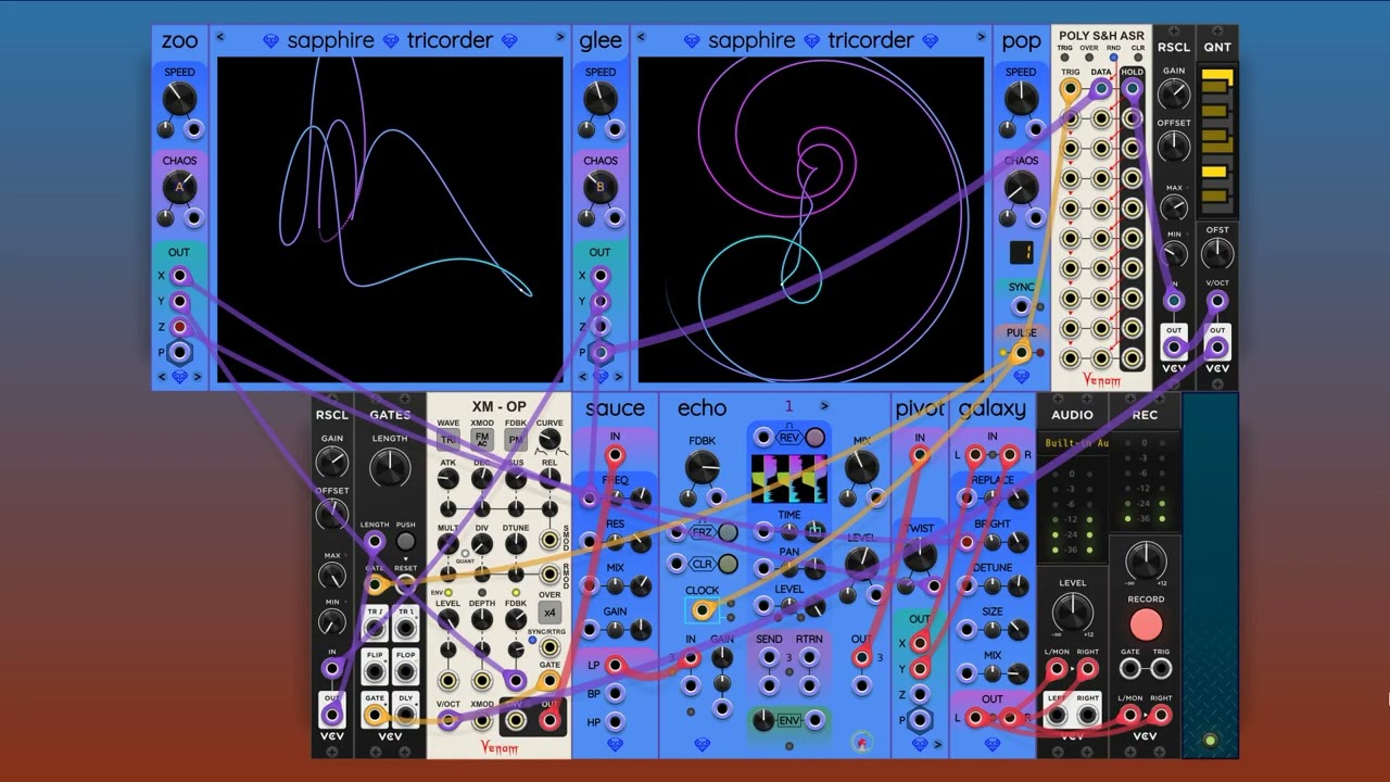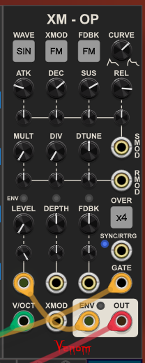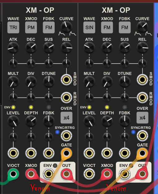 I’m having lots of fun with Venom XM-OP. I found I can mutually cross-modulate a pair of them. So far the damage to the spacetime manifold is minor and mostly under control. Patch is here.