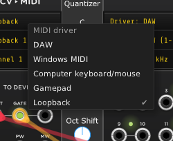 If you are running Rack in a DAW, you can choose DAW and the MIDI driver selected for the track in your DAW will be used, no need to select a device in Rack then.