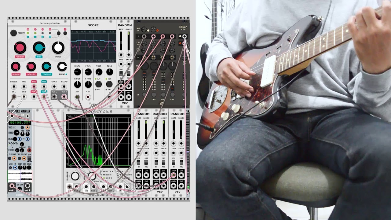 Jazzmaster electric guitar sounds processed to Mutable Instruments Clouds and micro sampler/looper in VCV Rack with semi-generative approach.