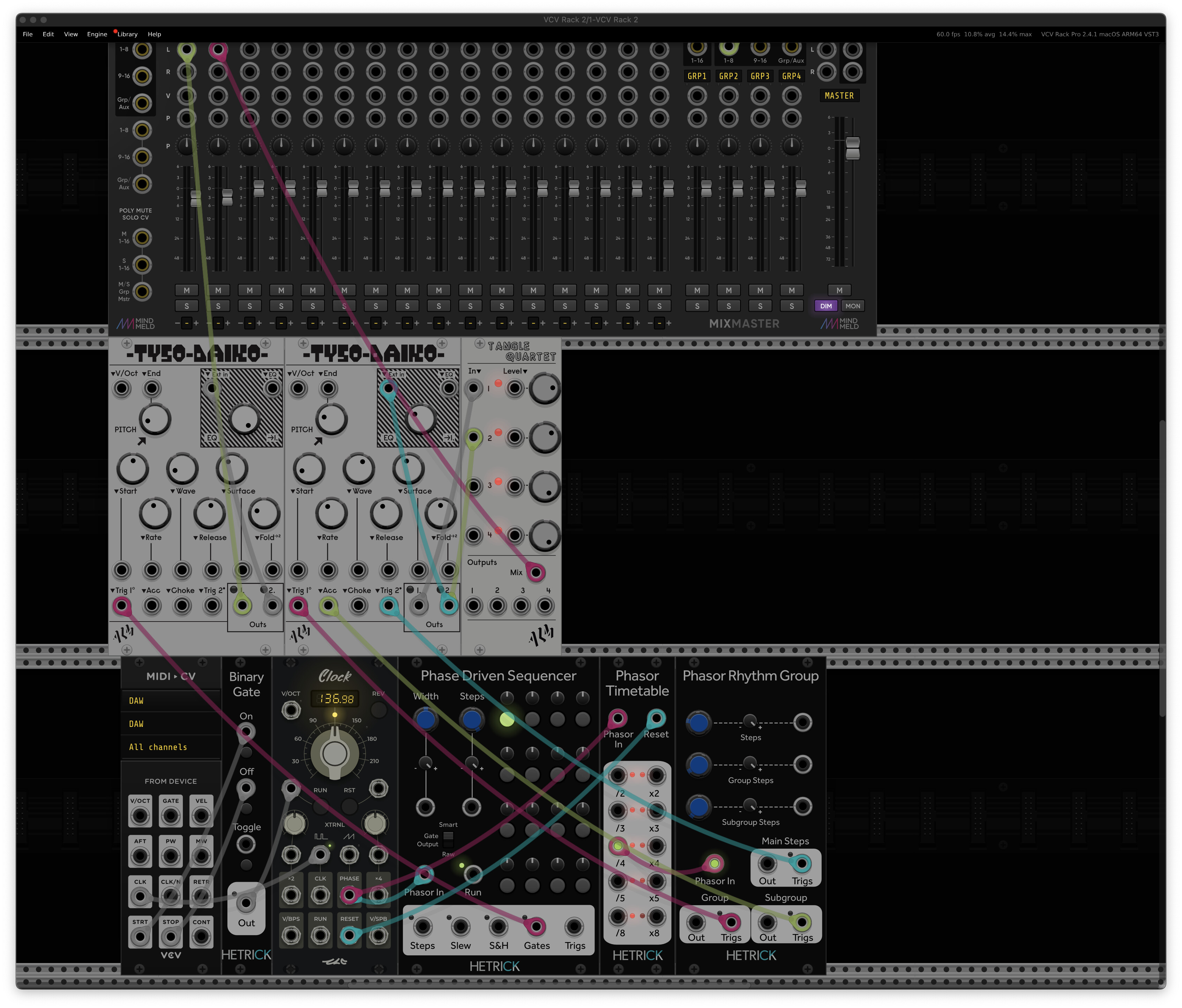 In my work, I usually just have a free-running clock source and typically don’t sync it up with a DAW transport. My default starting point for phasor sequencing is any saw LFO + Phasor Timetable. I then improvise from there.