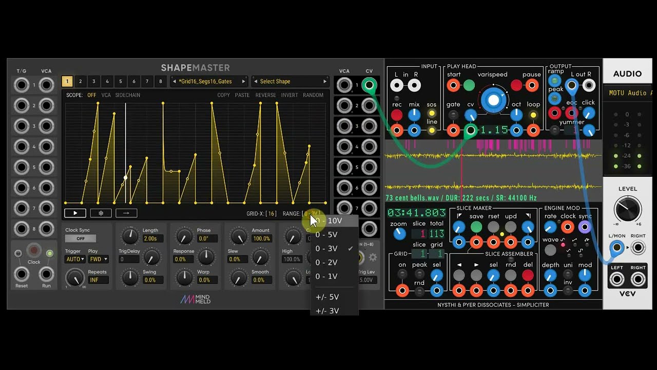 Yes, it sounds lo-fi because there’s no interpolation between samples. This could be added easily to the code. But there’s a lot more to do to prevent clicks an pops when the playhead jumps from one position to another. And with the resolution of CV values used in VCV Rack it is only possible to use a buffer up to approx max 6 minutes at 44.1 kHz.