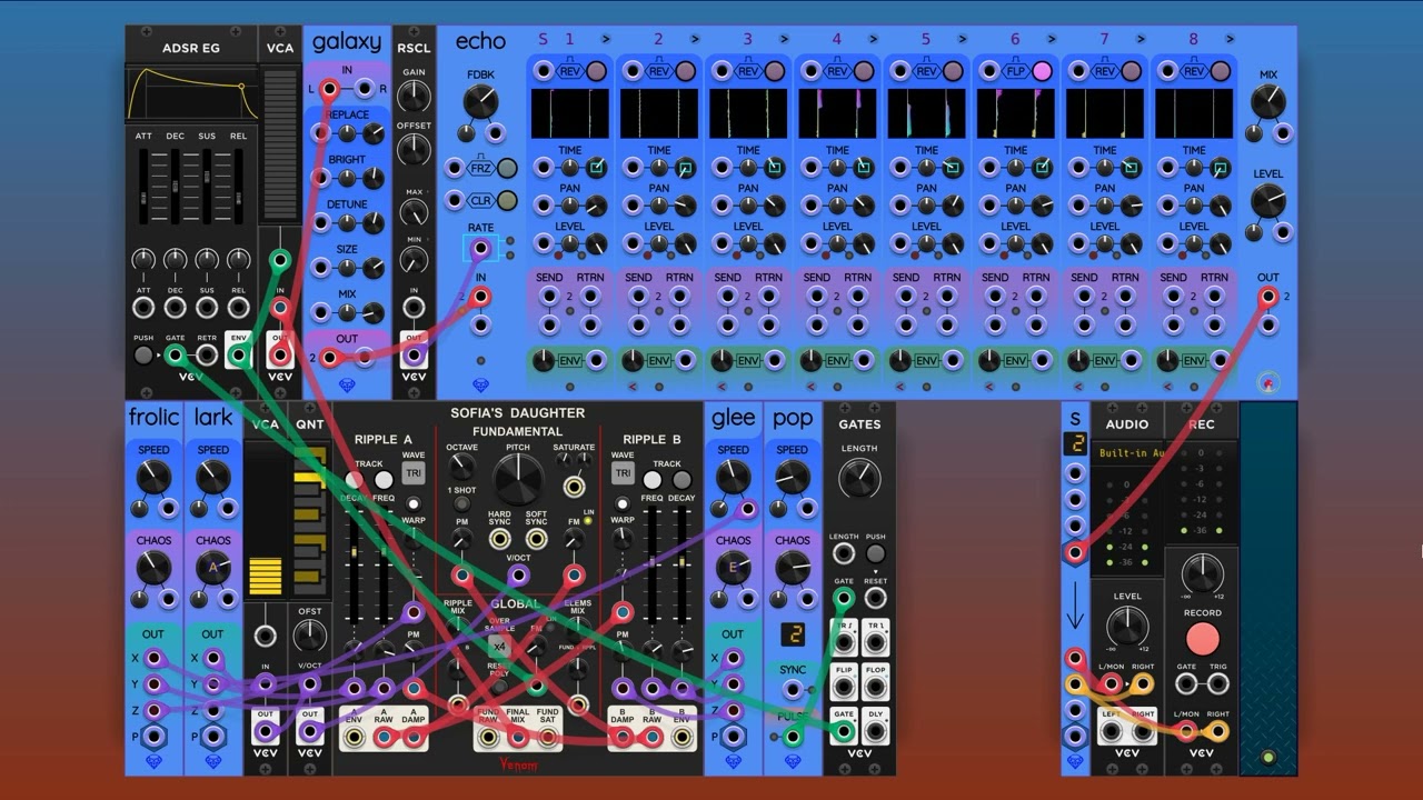 If you want to explore some of the sounds of Sofia’s Daughter before purchasing, you can try out a prototype patch constructed from a host of free modules. But working with the finished product is so much nicer!