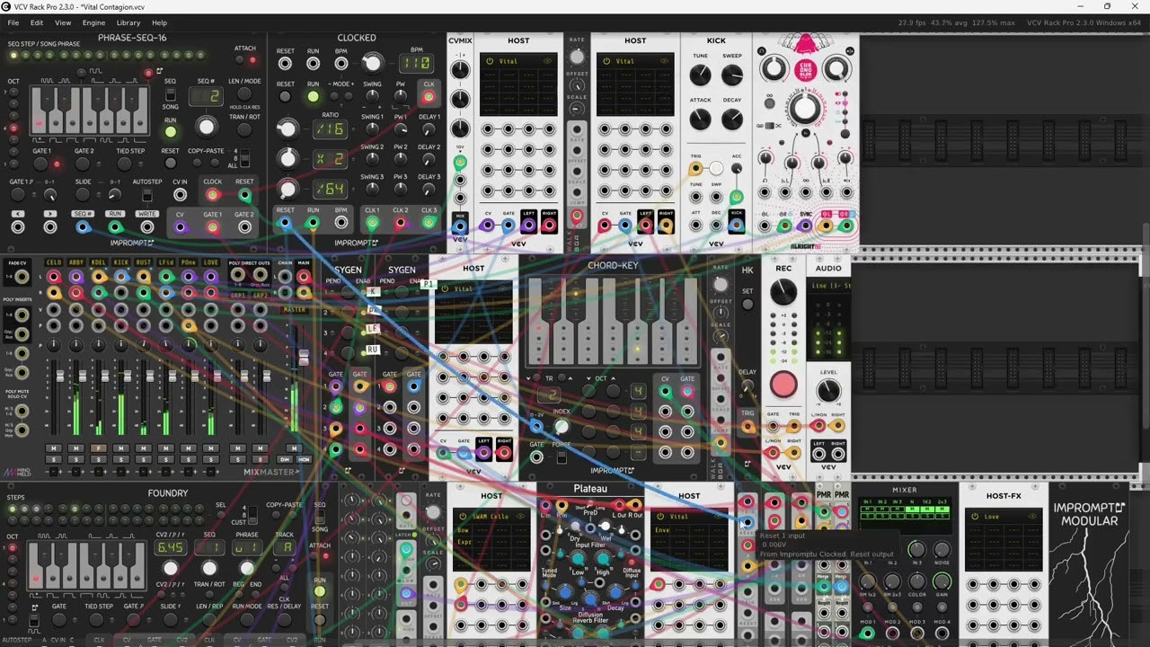 My current issues are mixing and mastering inside VCV, I find this very entertaining ; for now it’s bad, I can’t find the right dynamics processing combo to achieve high LUFS without too much harmonic distortion but I’ll get there, and the day I can use my VSTs, I’m afraid too to stick to my habits and use VCV like any DAW.
