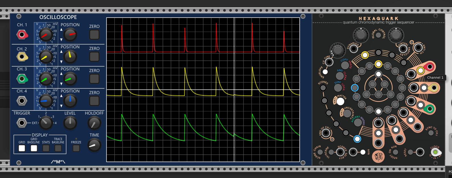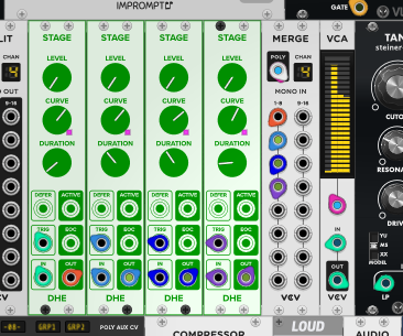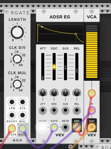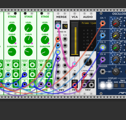 This is my envelope chain currently, and also I would prefer (not demand) but prefer to do it first with basic building block modules that are available in eurorack.