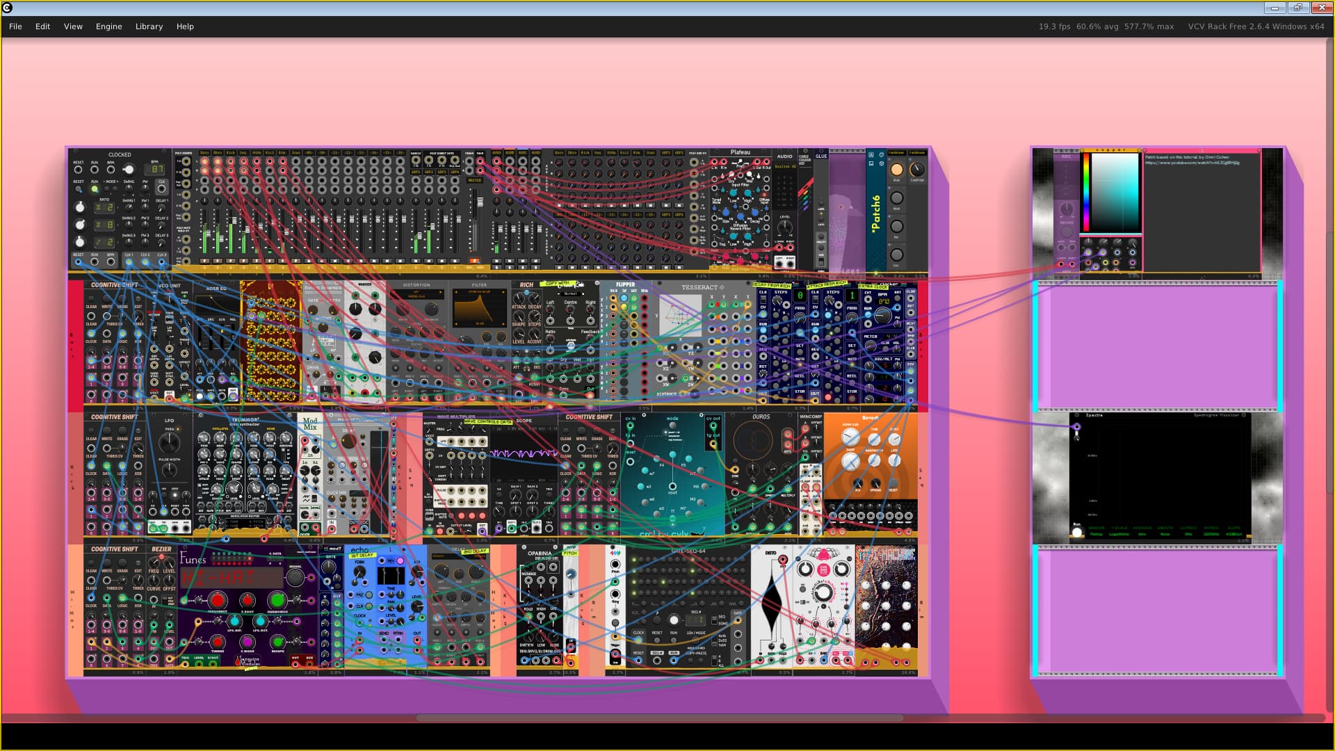 But when I hit fullscreen mode in VCV it looks like this (notice the lack of a yellow outline around the screen. This means that OBS is not capturing screen.):