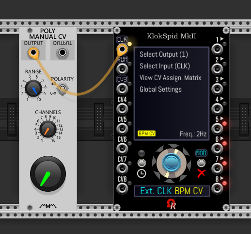 So, turn the continuous encoder until it displays Ext. CLK BPM CV (no need to valid).