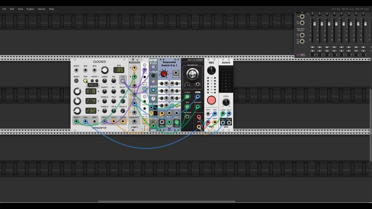 *If it’s hard to see - the clock sends resets on \32 to the ML switch and Autobreak. That’s how I usually do it. I don’t know why I forgot to mention that in the starting post. Probably I was sleepy. Resets also acting weird time to time, but the main problem is with using clocks as resets. And I tried to mess with the Pulse width and gate to trigger stuff and all that