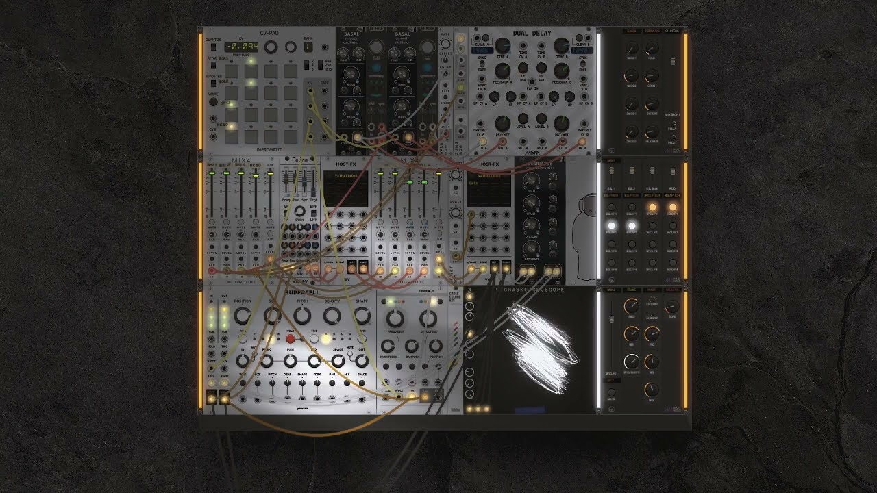 Keystep, Microfreak, Makenoise Strega and Mr. VCV on the reverbdelay.