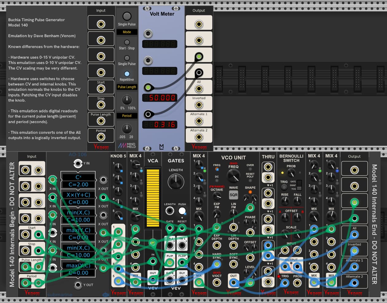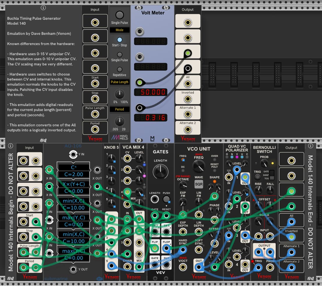If you’re serious about wanting the period/frequency range of the Buchla 140 there’s no one module that will do it. But I have a solution for you below. Also, since the period knob on the module has quite an extreme range and is “backwards” compared to normal LFO’s, a bit of wizzardry is required.