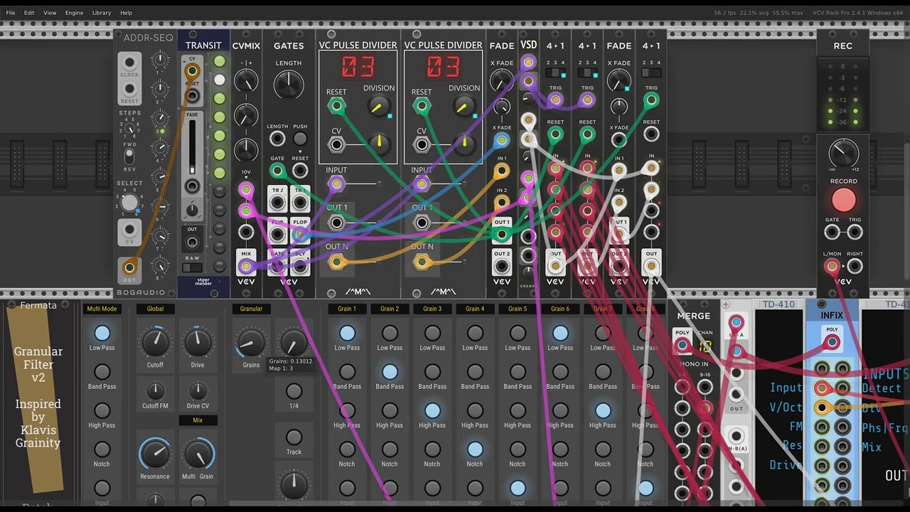 Before I had the sense to ask if there was an 8->1 switch with de-click available, I actually implemented 8->1 using multiple VCV 4->1 switches. I didn’t worry about making it pure VCV, and it was still pretty damn complicated. Besides working out the overall logic, I also had technical issues like converting the incoming trigger into a 1 sample trigger, and inserting the correct number of sample delays for certain paths. Had I learned of the much simpler solutions before, I never would have taken the time to do this. It was kind of a fun challenge though.