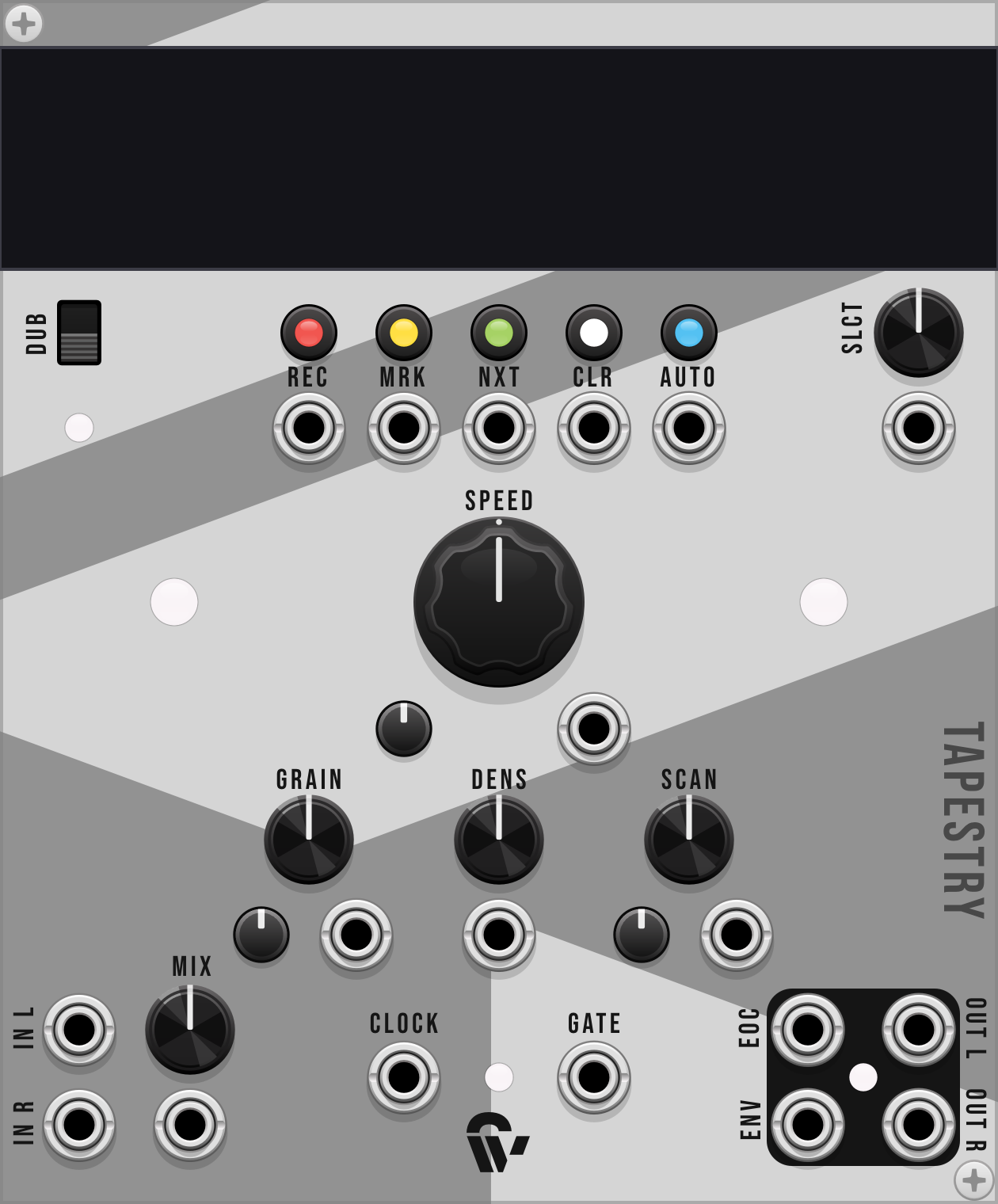 This module is dedicated to the fans of music concrète, combining tape manipulation techniques and granular synthesis. It allows you to record, splice and morph audio signals to create unique textures and glitchy effects. It also comes with a dedicated expander module, adding bit crushing, Moog-style resonant low pass filtering and output volume control.