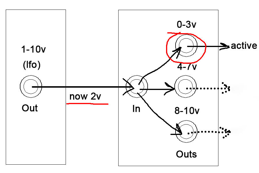But now wanted to expand task lol: output not in form of just static 10v, but with preserving incoming realtime’ changes (in this active range ofcourse).