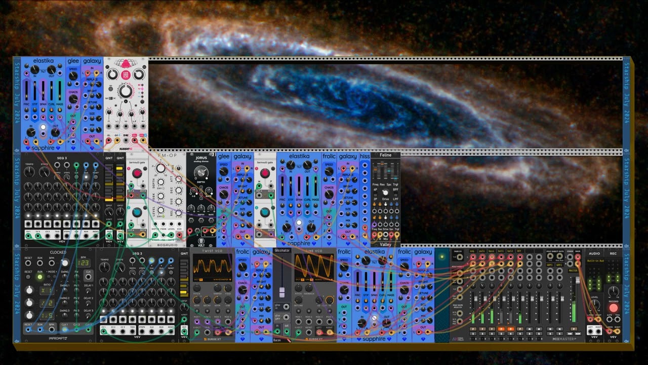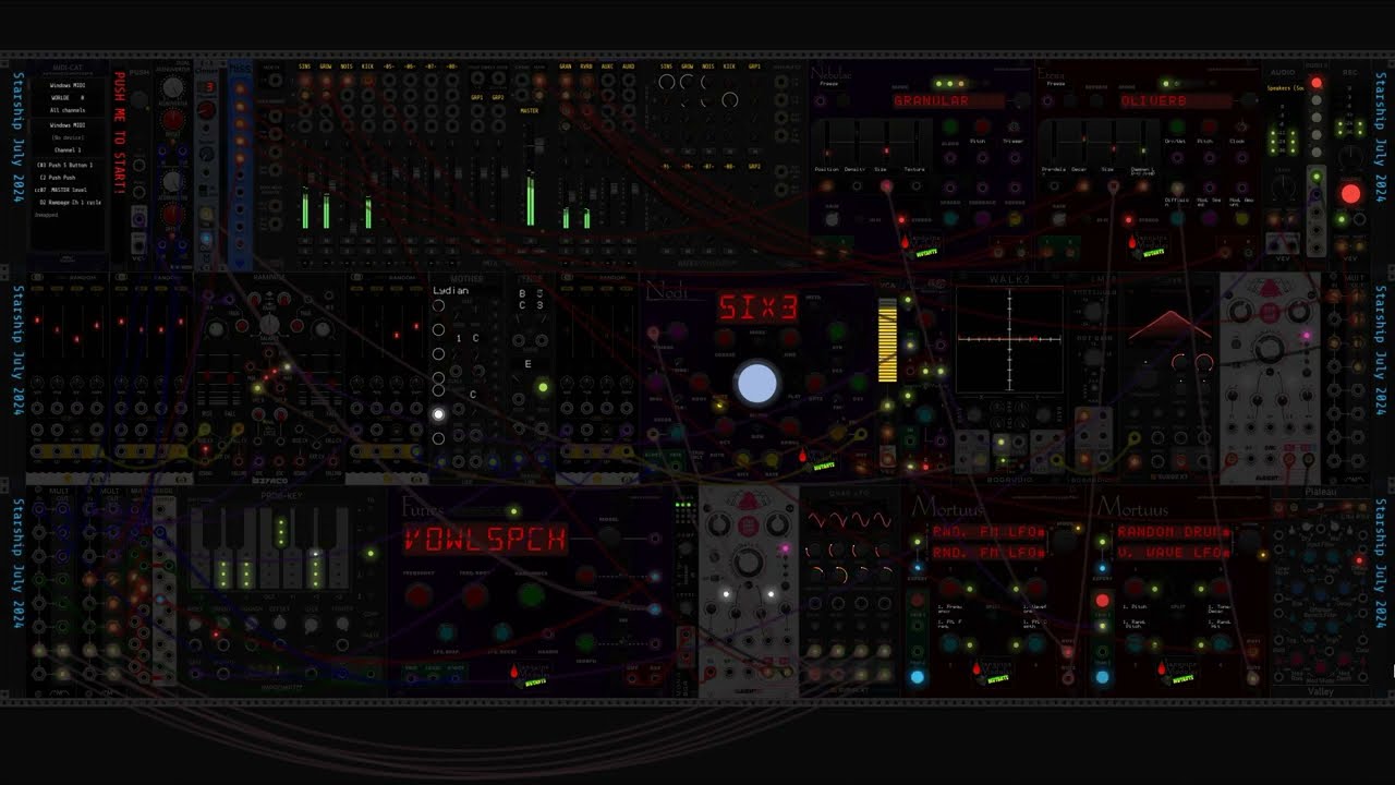 Here’s another take on the same idea. And I humbly ask @cosinekitty to do the same, to record the video. It’s a bit slower in development. Meaning it’s not just one loop going rounds. It’s more random-depending. Dependent? Whatever. You can adjust the probability of “Chances” for this patch to go faster. Anyway. Here it is. Light dubby psychedelic thing. Like one 1/100th of what Carbon Based Lifeforms would do in a track, haha StarshipSoundtrack July 2024_Template_yier2 (1).vcv (27.0 KB)