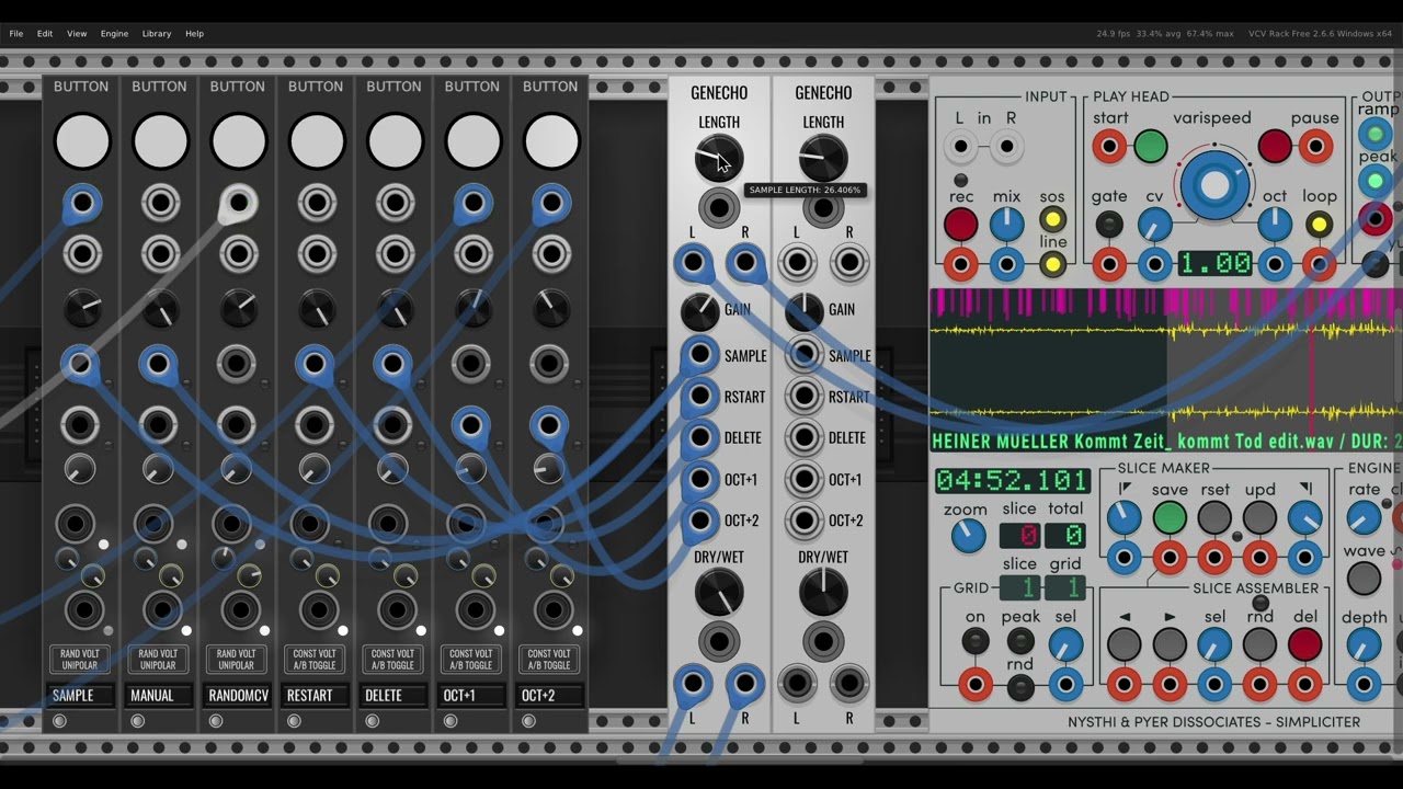 The GenEcho by StochKit was part of a small collection of very glitchy Stochastic Synthesizers some 6 years ago during VCVs beta phase (v0.6?). After seeing Grandy brought back by Shortwav Lab as ReGrandy, I remembered the GenEcho Sampling Effect and how much I loved it.