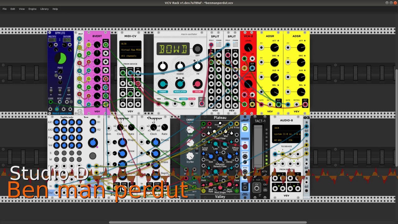 Greetings ! You can use whatever output module suits your system. I’m on Linux, the Skrylar Jack 4x4 is my output module of choice. Regarding the macro oscillator (version 1 is used in the patch, not v2): It’s a polyphonic version made by Xenakios available here for Win/Mac users: