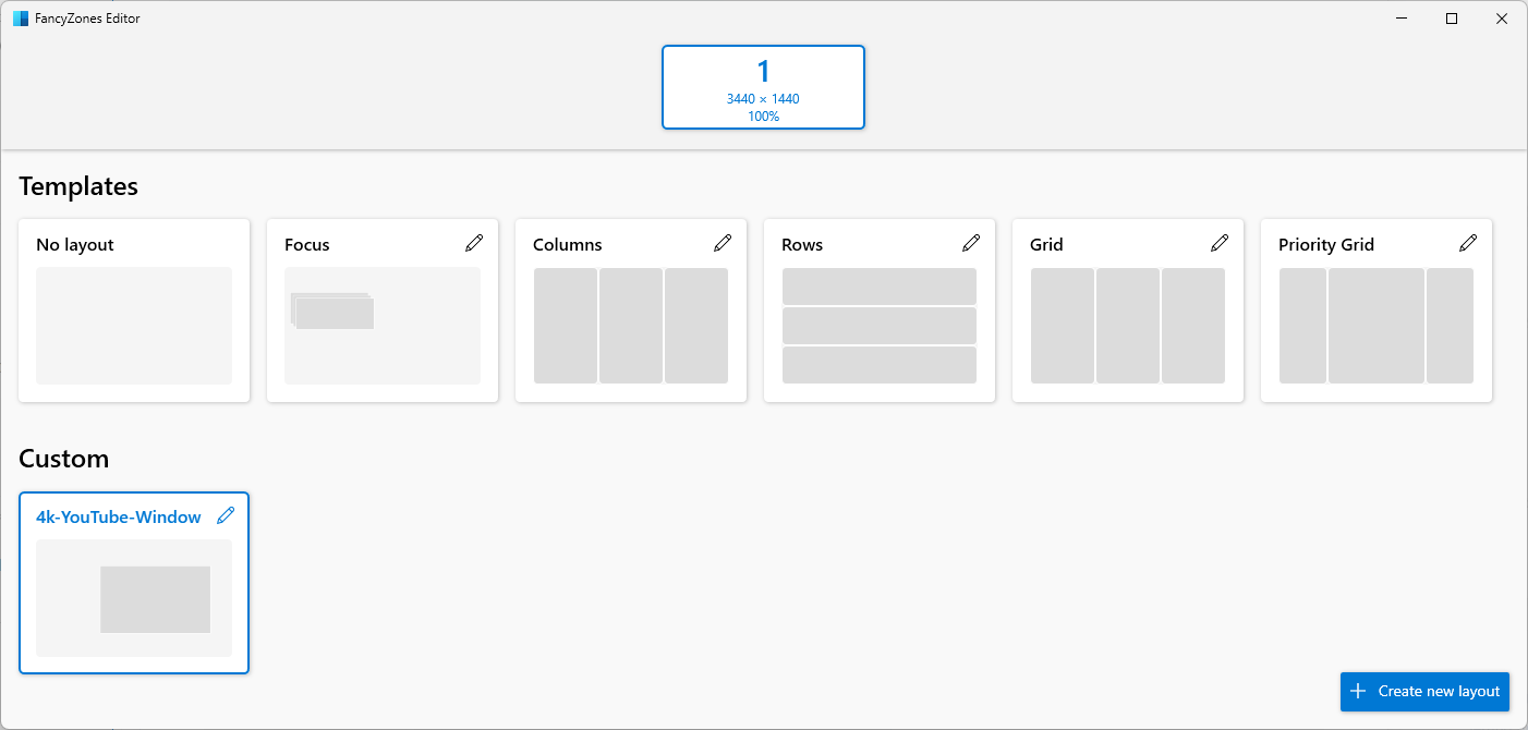 So I need to take this in to account when I set my FancyZone, I set my size and position so that the cropped area of the window is half of the 4k resolution.