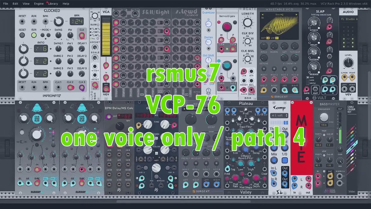 This was a really fun challenge and I might make a few more submissions for vcp-76 using this as a mini fixed rack, just to see what other textures I can produce with Energy.