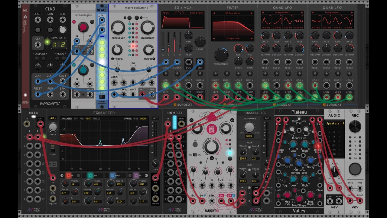 Most modules are the same between the virtual and hardware rack recordings, Macro Oscillator 2 / Plaits being the one voice, with the following substitutes between VCV and hardware.