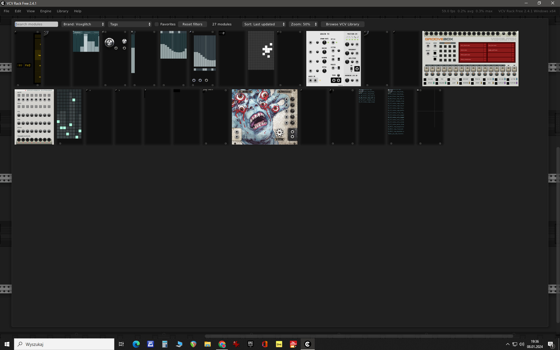 I am a windows 10 user. I tried to load a voxglitch module but with most of them I have a “display/graphical” problem.