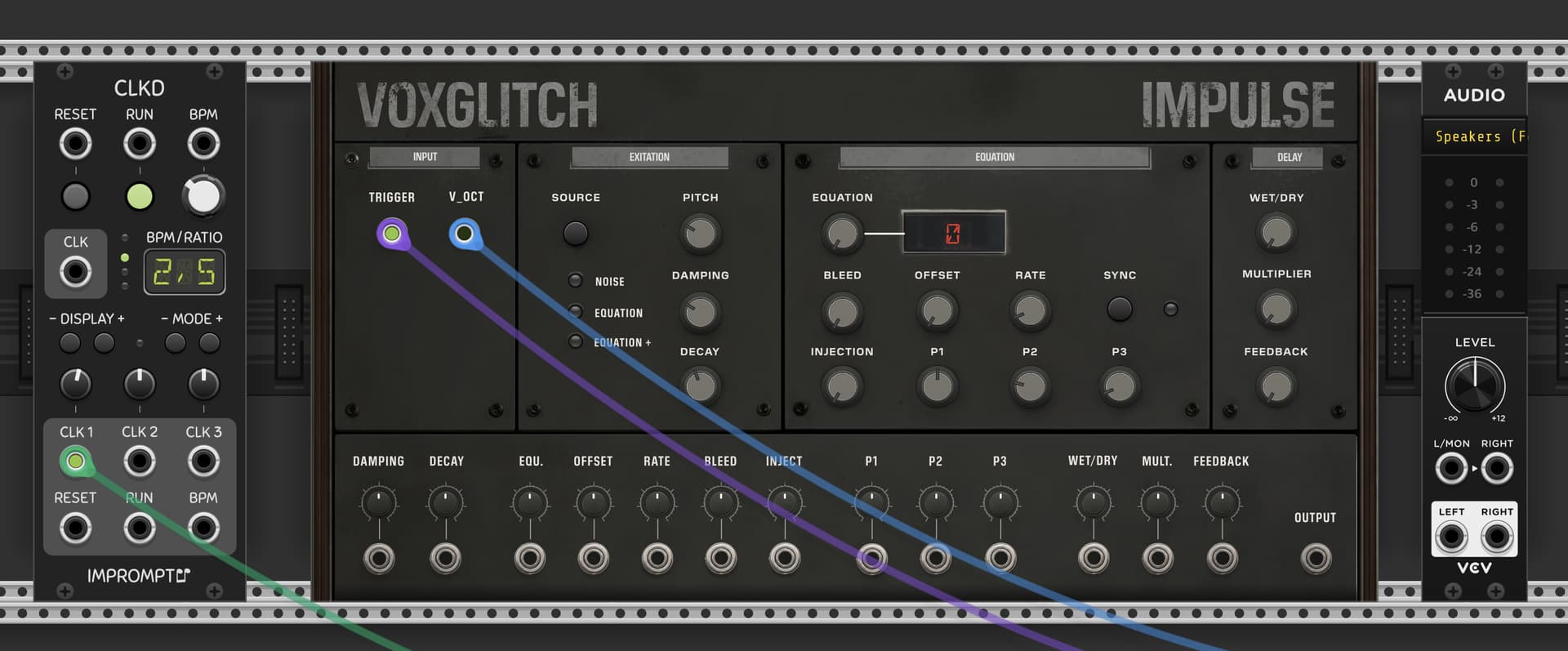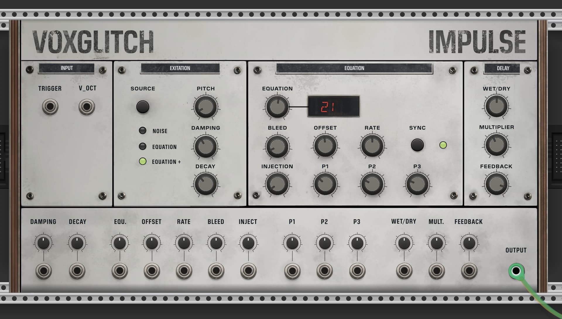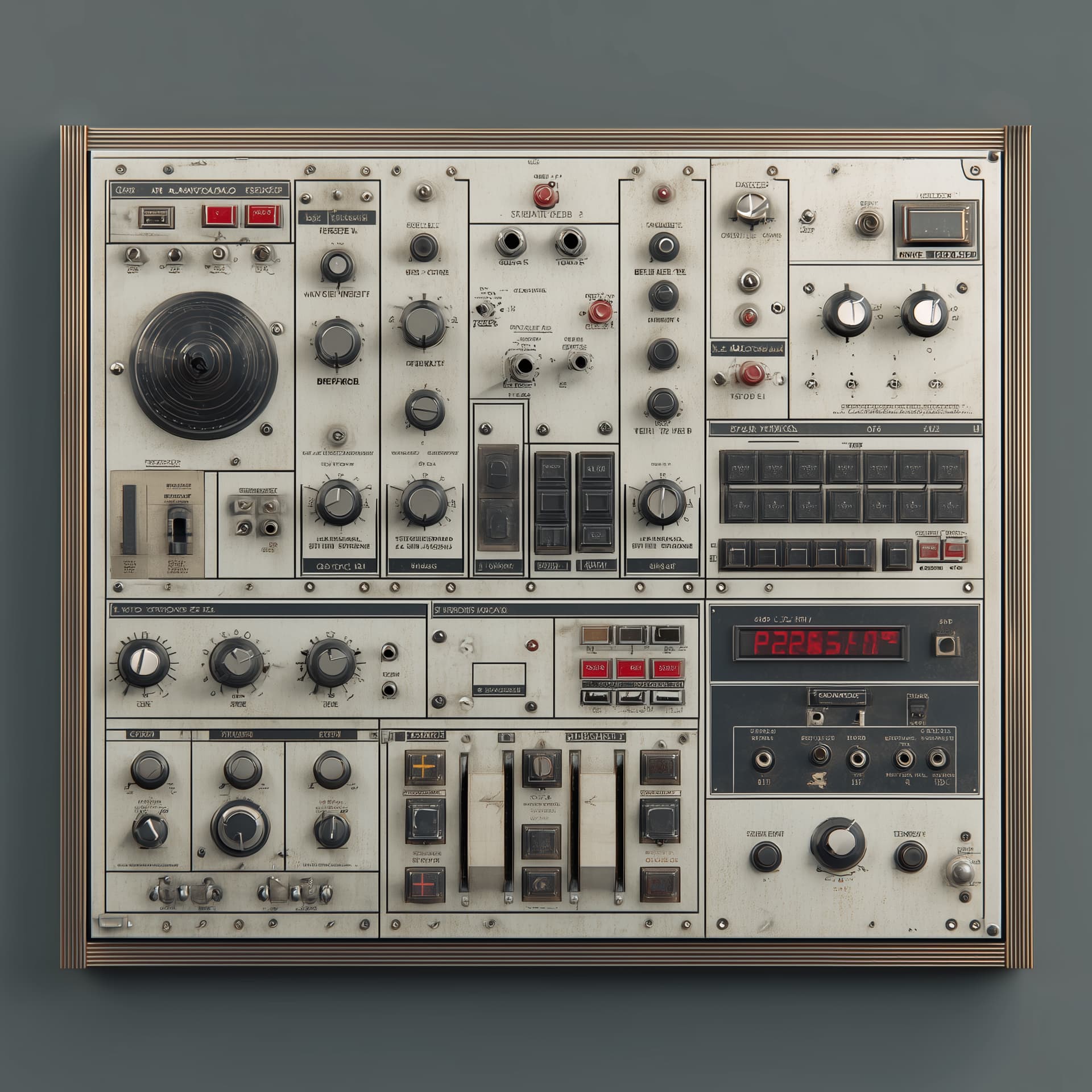 The concept for this panel was generated in Midjourney. I took that general concept and brought it into Krita, where I hand painted most of the shadows, grit, and details. I created the custom knobs in Inkscape. The ports and attenuation knobs were generated using ChatGPT, which I modified.
