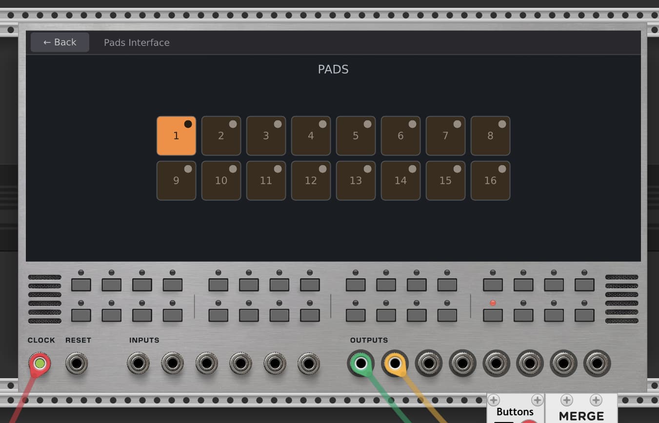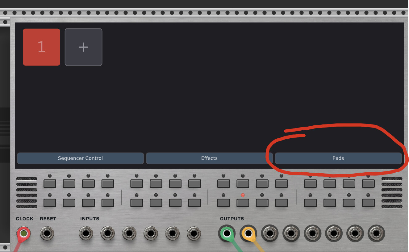 Clicking on this interface brings up a pads interface. (I know, the pads are unnecessarily small right now.)