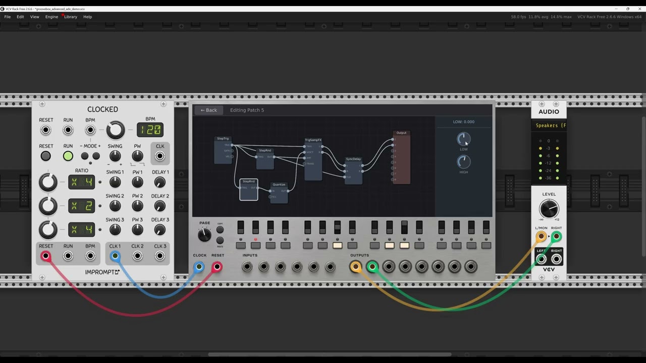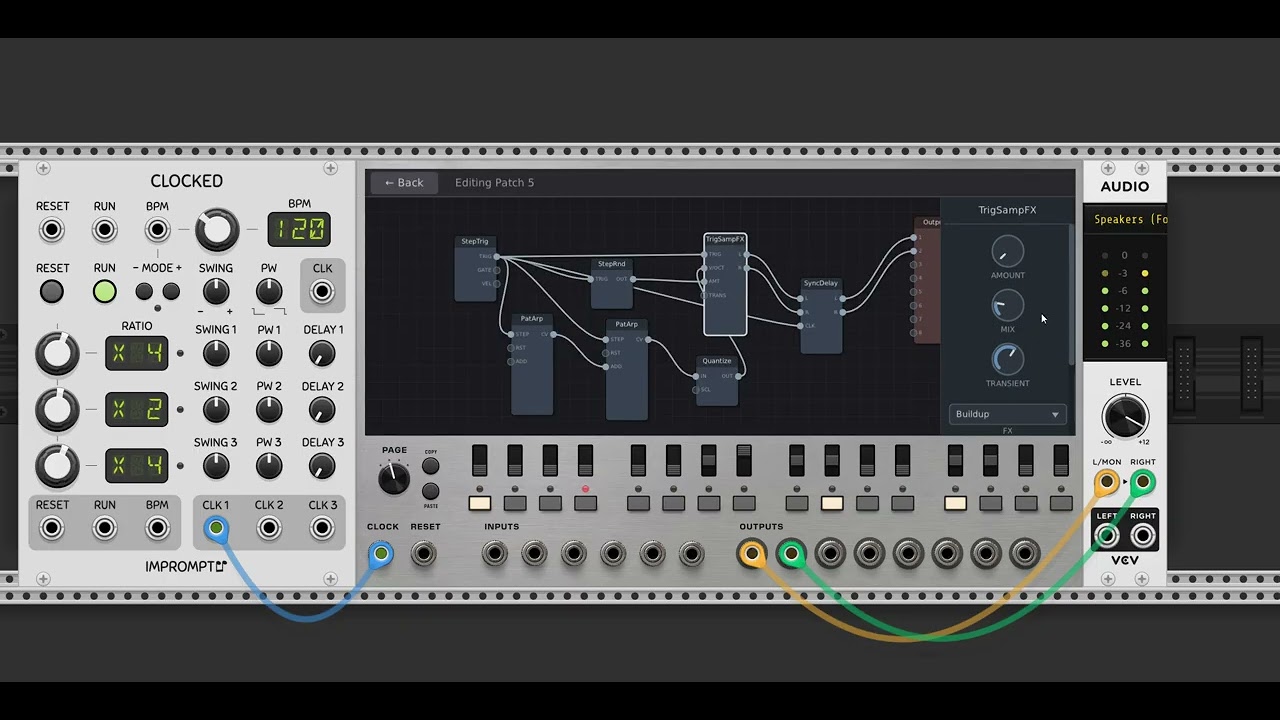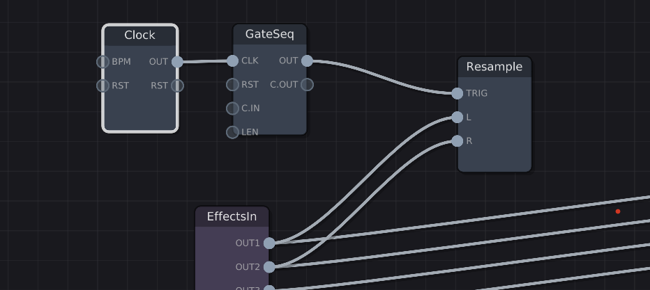 - I added module called “resample”, which takes two stereo audio inputs and a trigger input. Basically, it records audio.