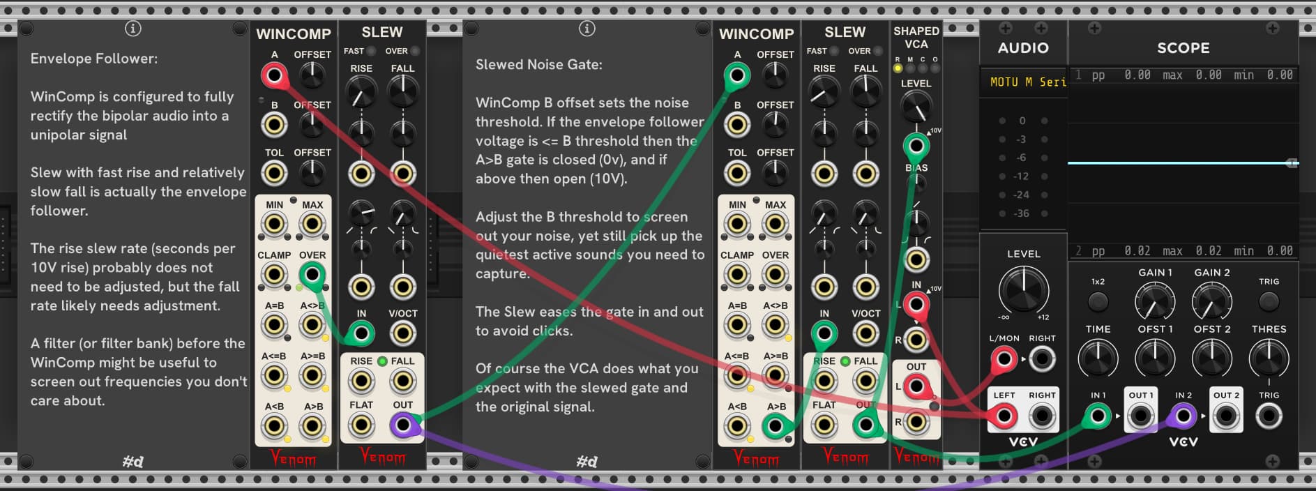 And then with the gating – your frustrations with VCV modules slamming too hard/fast – start throwing slew limiters in the path. Also, like compression (and like my notch filter situation as described) it doesn’t have to be an all-or-nothing solution. I assume you’re familiar with ‘NY compression’ aka parallel compression. Same with gates; you can have a gate that’s more crude than you like and add dry signal to soften.